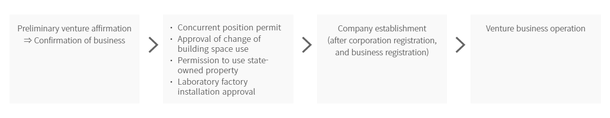 - A prospective entrepreneur is confirmed for a prospective venture company after receiving an evaluation of business and technical feasibility from a venture business verification agency (the Technology Guarantee Fund and Small and Medium Business Corporation).